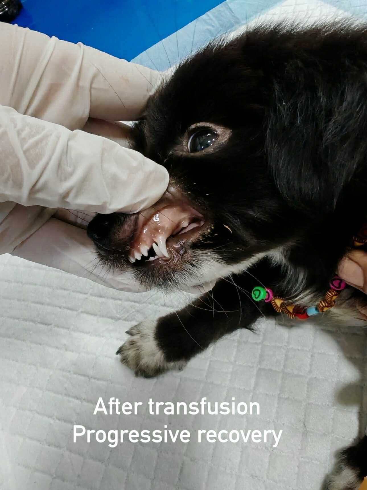 Our team worked quickly—administering fluids, antibiotics, and the transfusion. It was touch-and-go, but thanks to your support, to a compassionate rescuer, and to one very good dog, Billion pulled through.