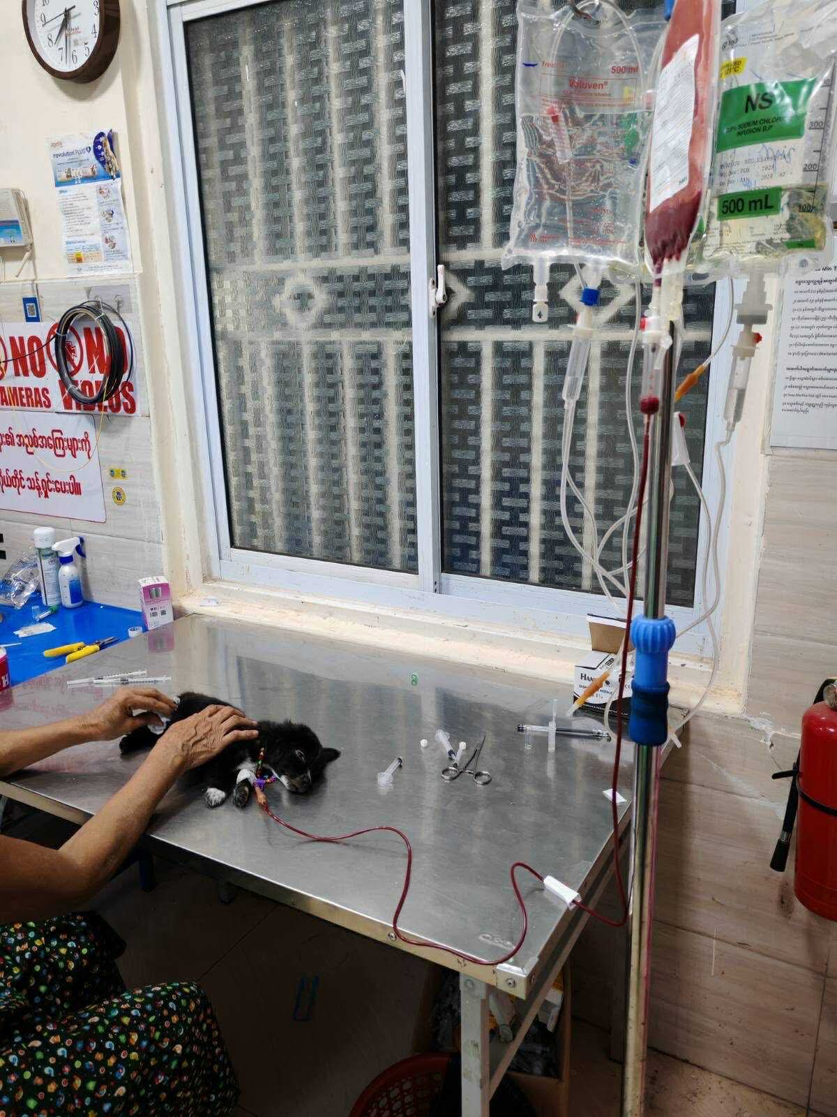 A kind woman who owns a small pet shop in Mandalay saw him and rushed him to our free clinic—set up in the aftermath of the disaster to provide emergency medical help to animals with nowhere else to go. When he arrived, it was clear he was barely hanging on. Pale gums, severe dehydration, a massive tick and flea burden, and a blood infection so serious that his life was slipping away by the minute.